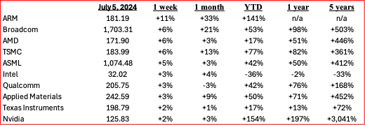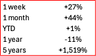 Tesla had a huge gain of 27% in the week, recovering losses earlier in the year. See comments on Tesla below.