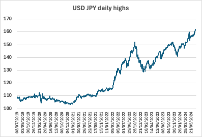Yen weakened further and approached the 162 level. it is not clear if there was government intervention.