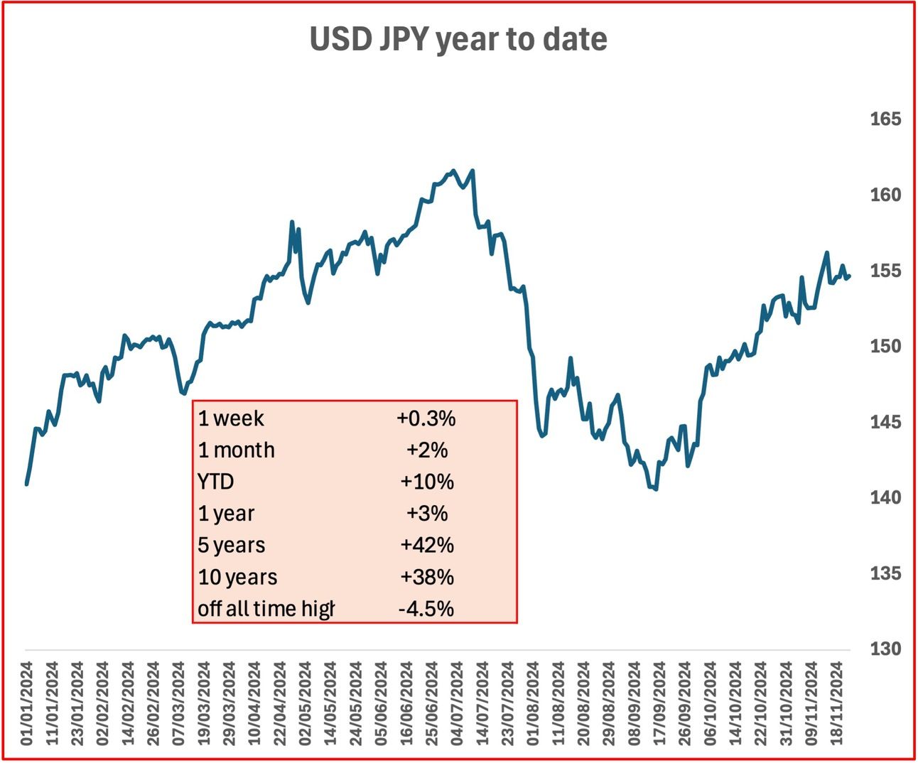 Yen depreciated to the JPY 155 range against the U.S. dollar, down from about JPY 152.6 the previous week. Japanese authorities reiterated their commitment to taking appropriate action against excessive currency movements. The yen's depreciation is partly attributed to expectations of inflationary policies from the incoming U.S. administration.