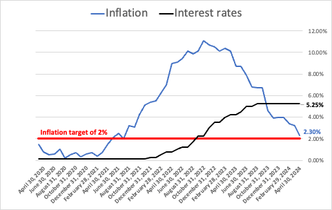 With interest rates at nearly +3% in real terms (actual - inflation) and inflation close to target, there is increasing pressure and expectation for a rate cut in June. Will the Bank of England make its first move in a few weeks time or will it wait another month ?