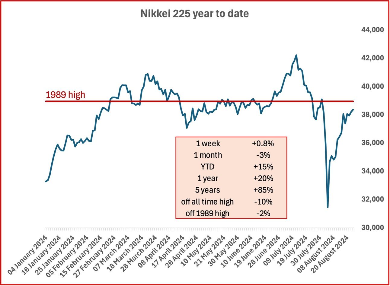 Nikkei 225 Index is +0.8% in the week and +15% in the year to date.