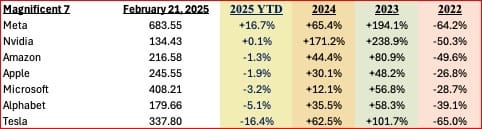 Mag 7 stocks declined during the week due to ongoing concerns about the impact of tariffs. Microsoft’s shares failed to gain, despite the announcement of the Majorana 1 quantum chip (see AI and Tech section below). Amazon dropped over 5% in the week, influenced by broader macro trends.