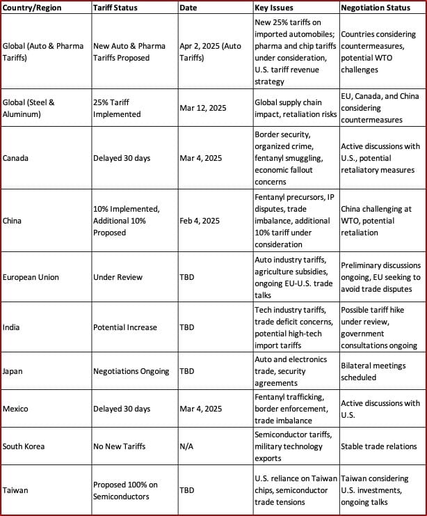 Interest rates and monetary policy remain in focus as the Federal Reserve takes a cautious approach amid rising trade tensions. New U.S. tariffs could potentially push prices higher, but some officials believe the impact will be temporary, while others warn of long-term inflation risks.