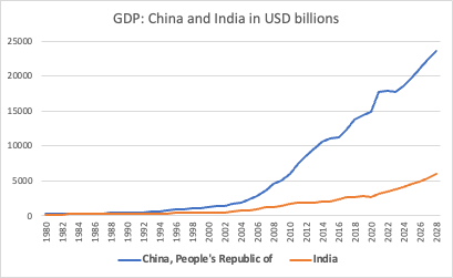China growth accelerated since the 1990s, and India is unlikely to catch up in the foreseeable future.