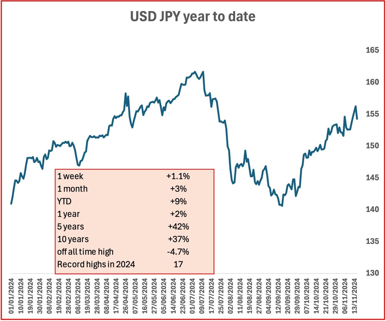 Yen has weakened in response to the elections in the US. The authorities have again indicated that there will be intervention to support the currency. Will 160 be the intervention level?