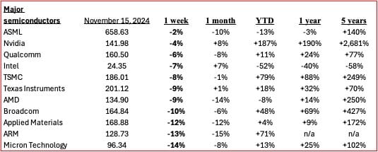 Major Semiconductor stocks: